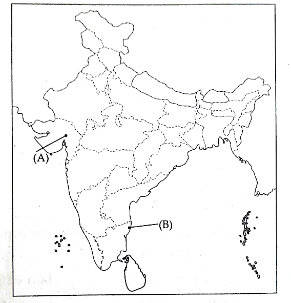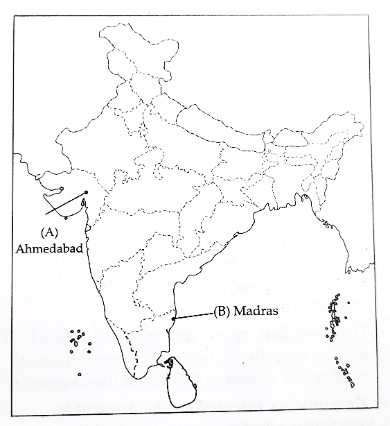 On the outline map of India. Locate and label the following with suitable symbols. (A) The place associate with the Cotton mill workers Satyagraha. (B) The place where the Congress session took place in 1927.